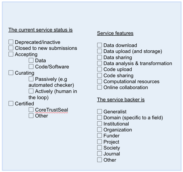 Evaluation Criteria Checklist for Repositories and Scientific gateways